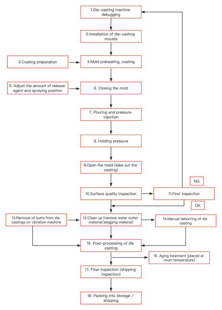 4, Aluminum alloy die-casting production process flow chart.